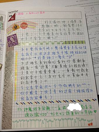 因為鋼筆在宿舍不在家裡,所以都先用彩色筆寫。